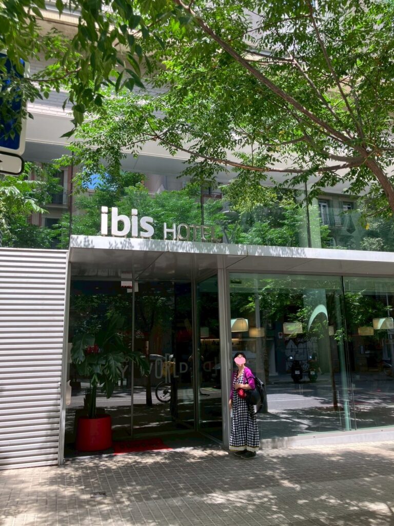 ここから約1km歩いて本日のお宿 Ibisバルセロナセントロへ、ACCORグループ会員サイト(下記参照)で予約1泊朝食付き2名で34188円。サグラダファミリア徒歩3分なので高いです。荷物を預けてサグラダファミリアへ、入場予約は明日なので今日は周りを見学。初めてのサグラダファミリアに感動です。