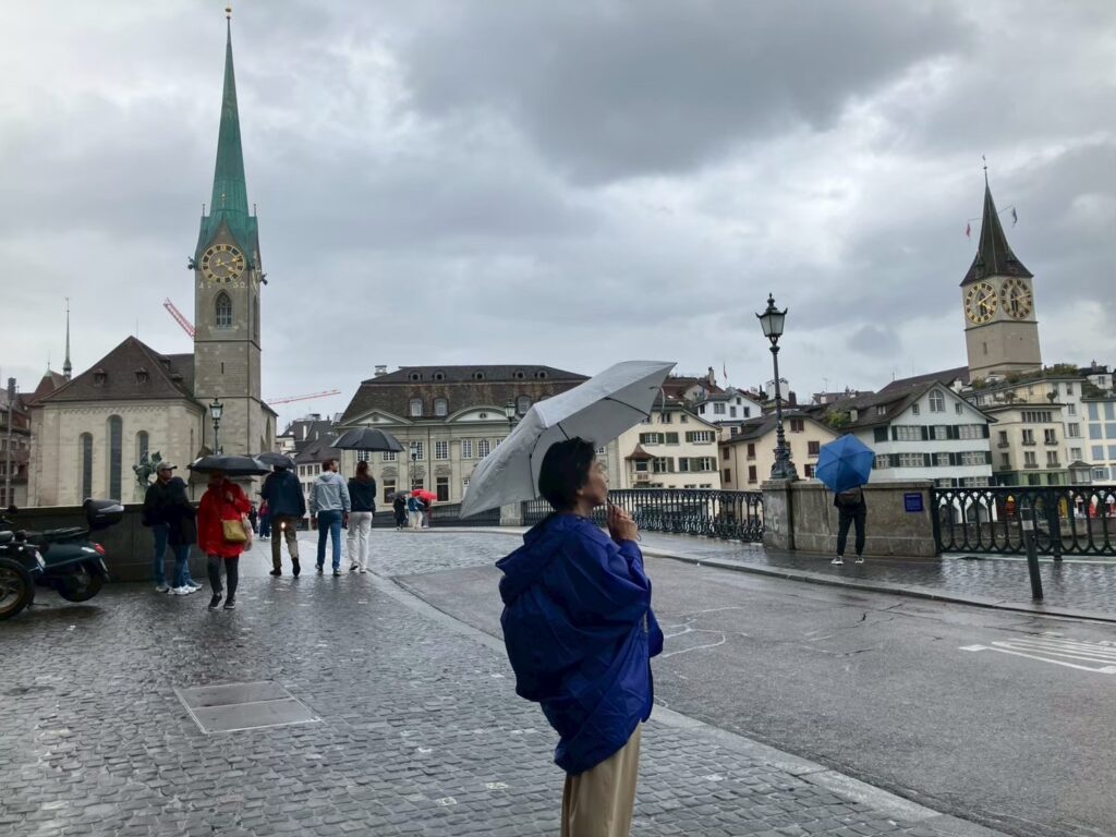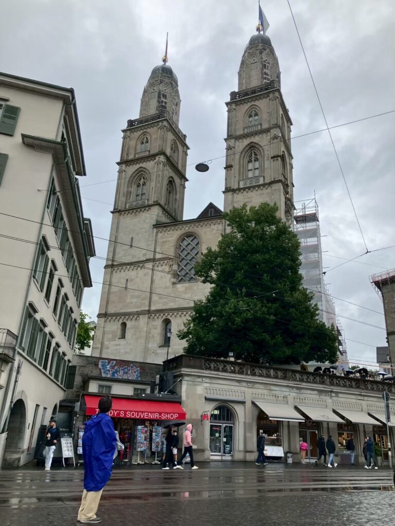 少し早めについたので小雨でしたがチューリッヒ湖まで足を伸ばしました。グロスミュンスター教会をはじめ多くの教会が立ち並びおしゃれな街です。
