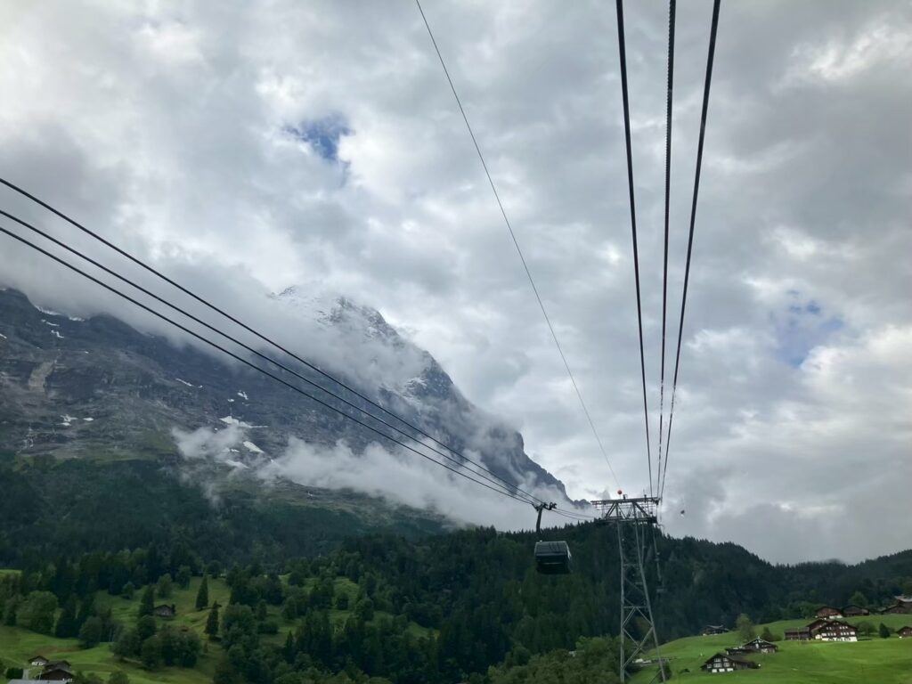夕方までは雨が降らなさそうなので、本日トレッキング。グリンデルワルト駅前からバスでターミナル駅(1034m)へ、今度はアイガーエクスプレスというゴンドラに乗ってアイガーグレッチャー駅(2320m)まで行きます。アイガーウルトラトレイルという有名なレースのコースの一部をトレッキング。アイガー北壁に沿ってトレッキングします。ほぼ登りはありません(笑)とても気持ちのいいトレッキングでした。