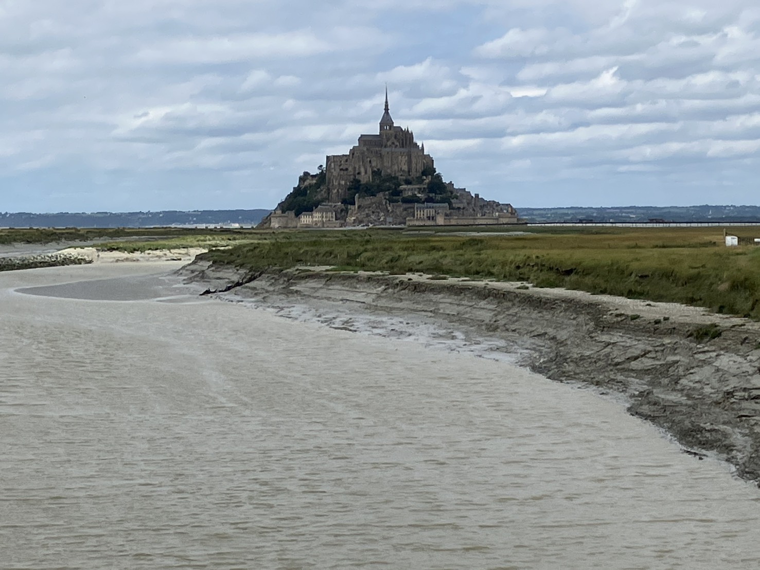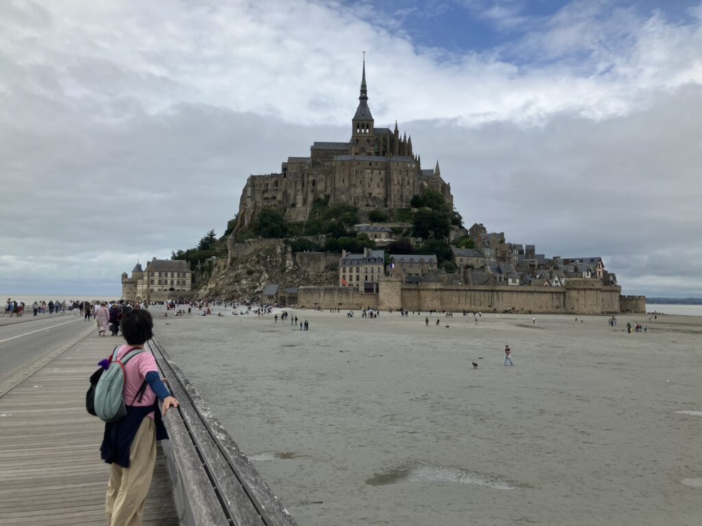事前に干潮満潮を調べると本日は11:56分満潮とのこと(干満差約10.5m)、海に浮かぶモンサンミシェルを期待して待ちましたが、海には浮かばず…。残念(9月~10月の大潮の時期だけだそうです)。ホテルで朝食をとりのんびり散歩、朝は人通りも少なく快適です。修道院の途中にあるサンピエール教会がよかったです。入口にあるトイレが無料で空いていておすすめ。前日、教会のシスターが明日朝ミサがあるから来てねと言ってくれてたので行ったのですが終わっていたようです。潮が満ちていくのをゆっくり眺めのんびりできました。