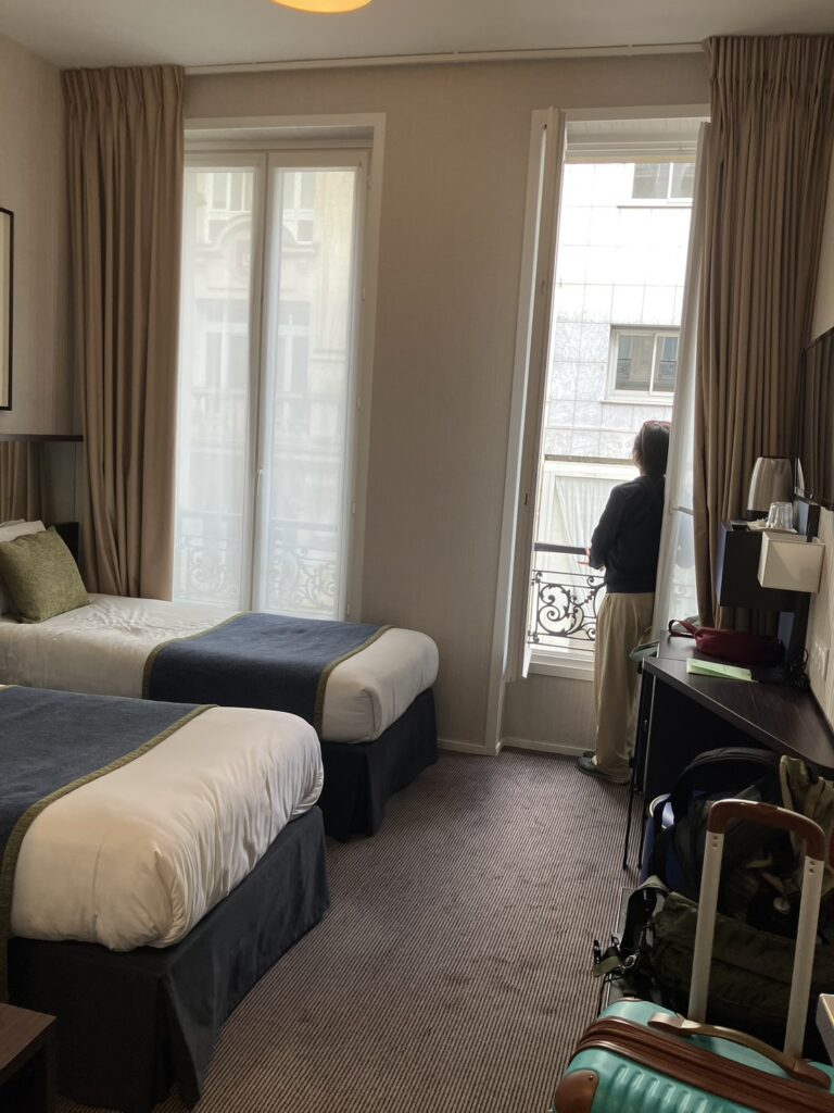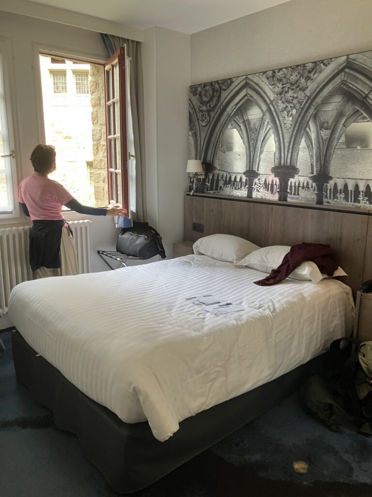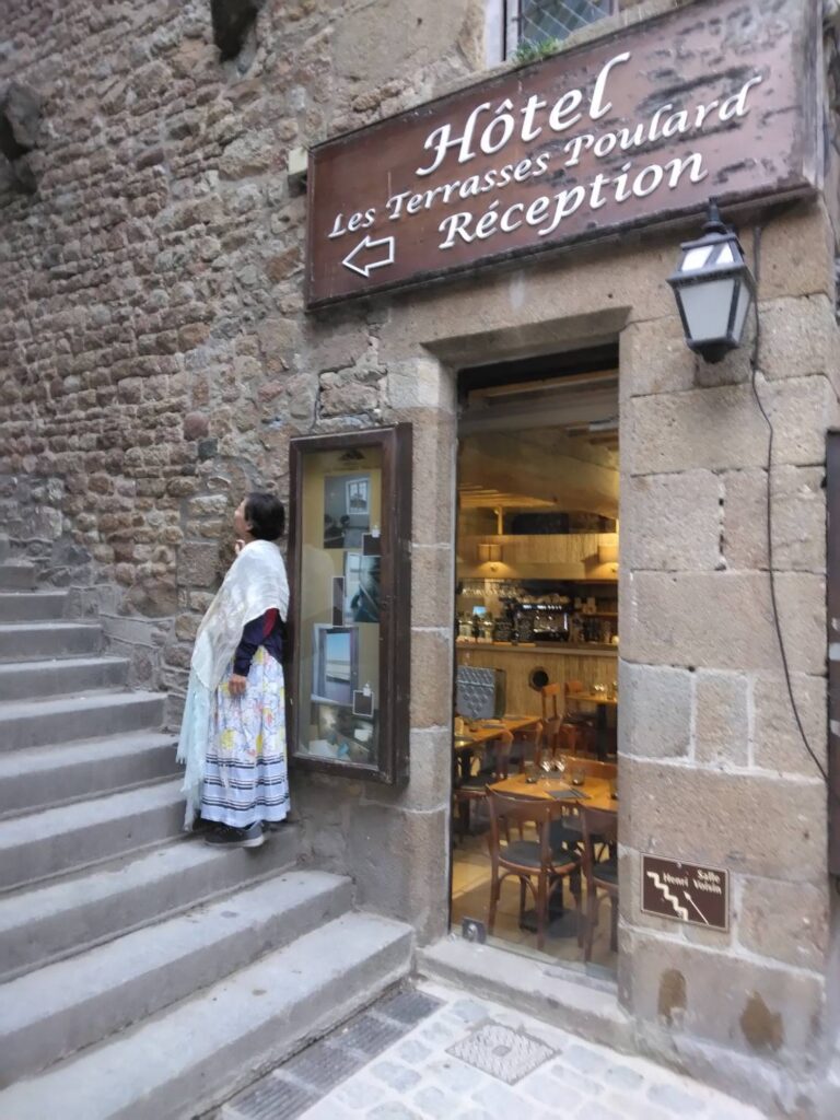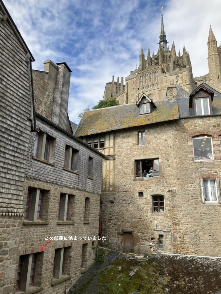 モンサンミシェル内のテラスプーラールホテルに宿泊します。アゴダで1泊朝食付き2人で45199円でした。島内を散策、17時ごろまではめちゃ混みです。有名なスフレオムレツは高すぎてパス、ガレット(そば粉のクレープ)を買ってやっぱり部屋飲み。