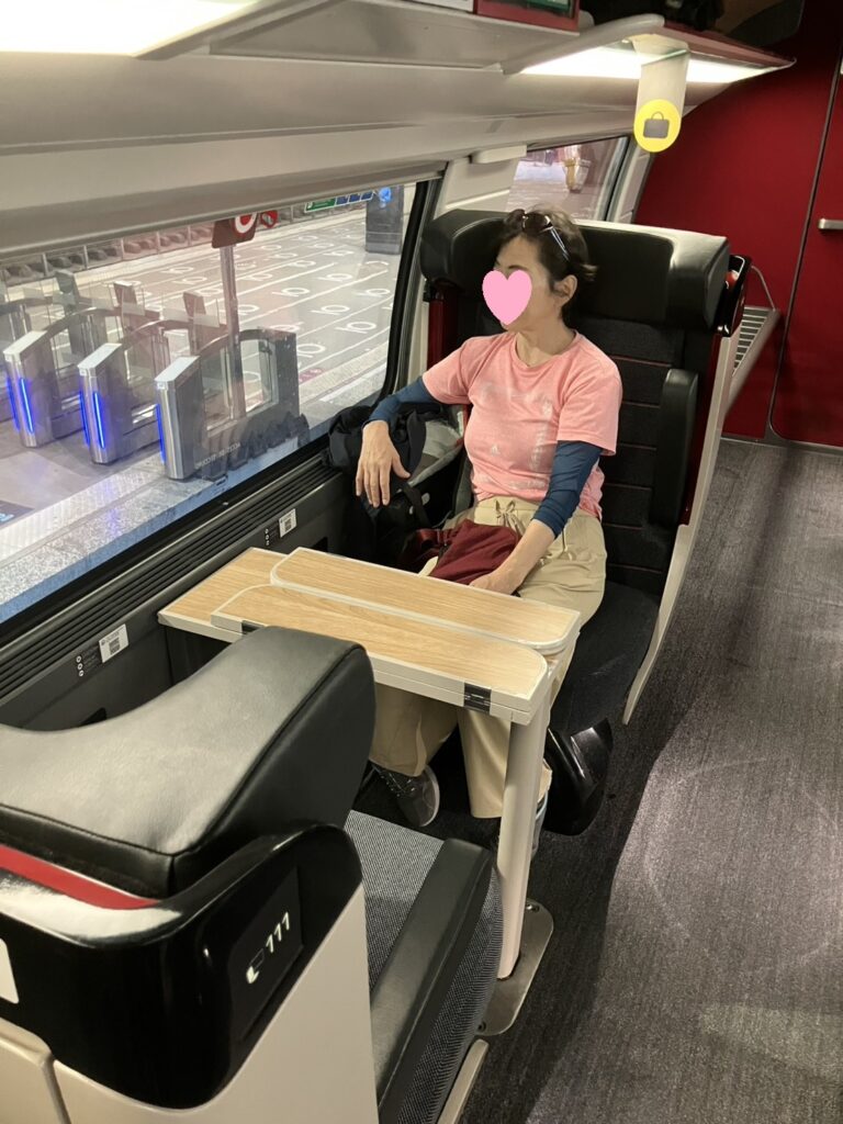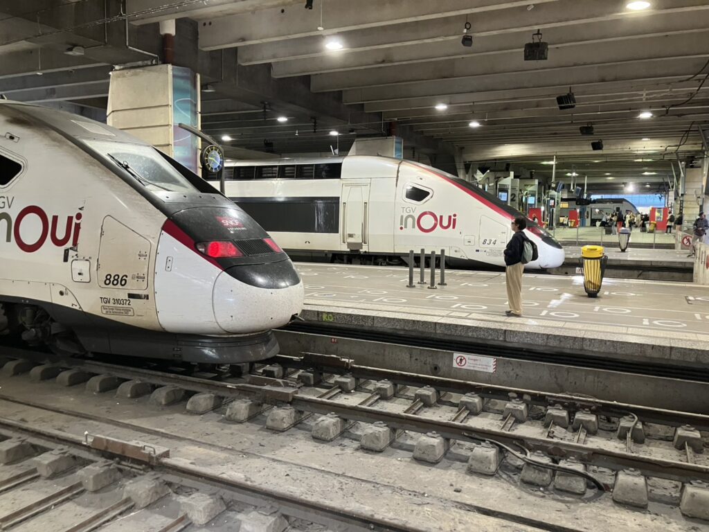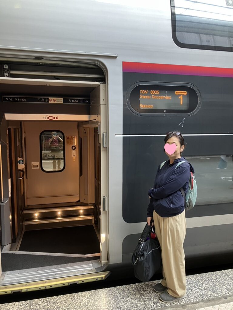 ホテルからモンパルナス駅まではGoogleMAP、メトロ利用で15分。9:56分のTGVを予約していたので、9時過ぎにホテルを出発、明日同じホテルに戻ってくるのでキャリーケースは預かってもらいます。モンパルナス駅はとても大きな駅です。到着ホールが1・2・3とあり、どこから乗るのかは20分前にならないとわかりません。みんな電光掲示板とにらめっこ、ウロウロしつつなんとか目的の列車を見つけました。