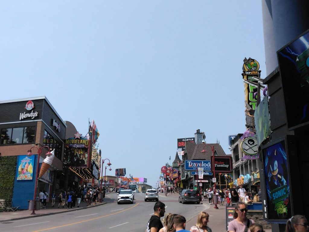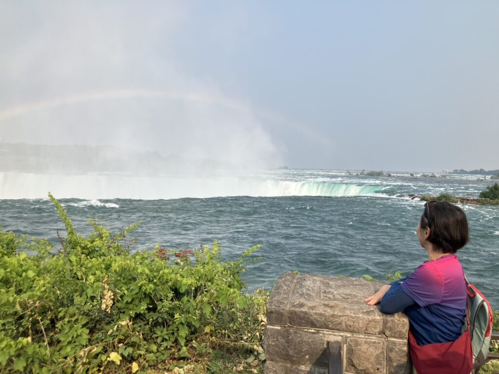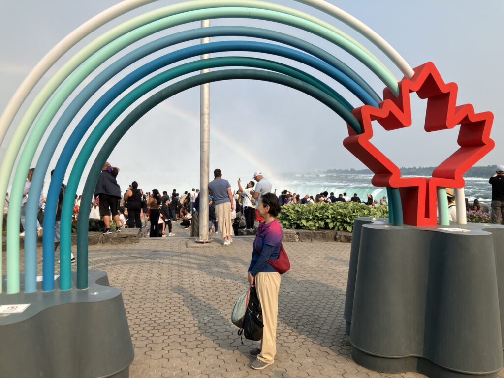16時のバスでトロントに戻るので、夕方までナイアガラの滝近辺を散策、カナダ滝とアメリカ滝を見学。クリフトンヒル通りはオールドアメリカっぽくてとても賑やかです。ナイアガラの滝は上流で堰を作り、左右均等に水が流れ込むように調整しているため世界遺産には認定されないそうです(妻のプチ情報)。アメリカ側にわたるレインボーブリッジまで行きました。国境手前まで行けるかなと思い向かいましたが橋自体が有料なのでやめました。グランビューレストランで生ビールを飲んでからサブウェイで昼食。公園でのんびり休憩したあとトロントに戻ります。