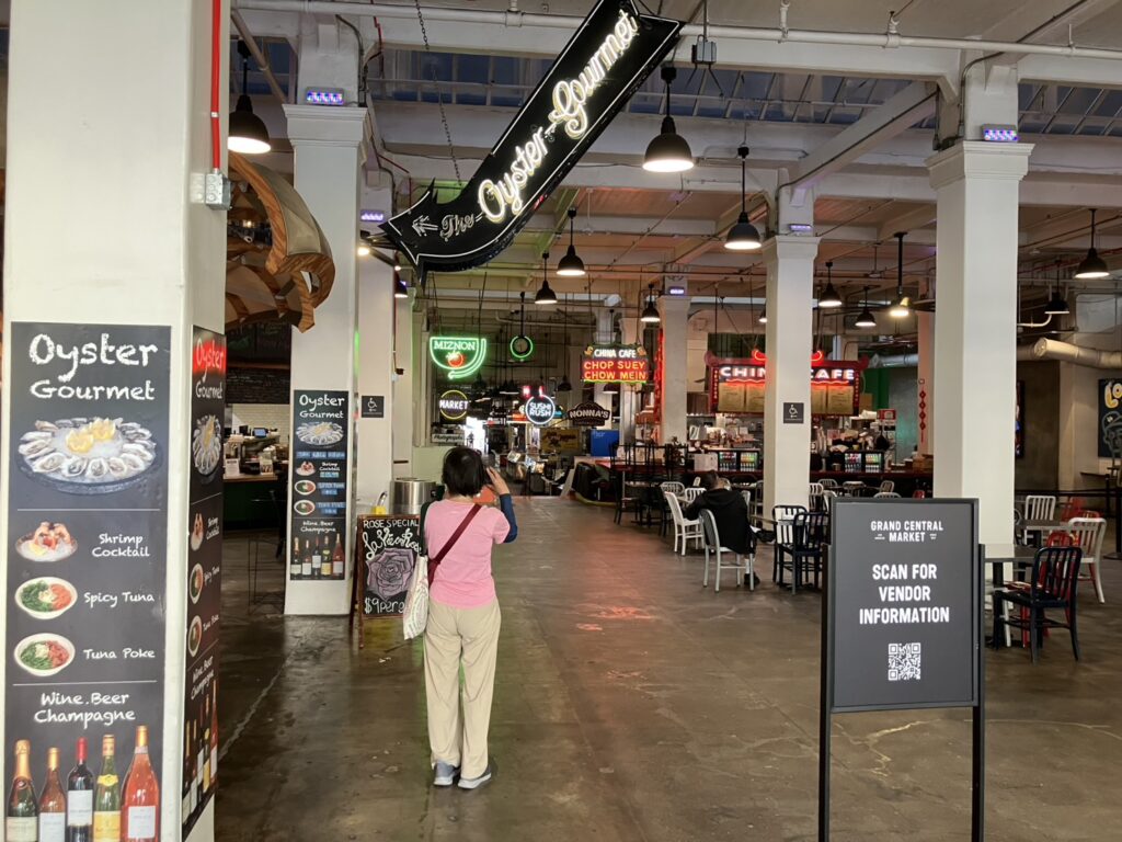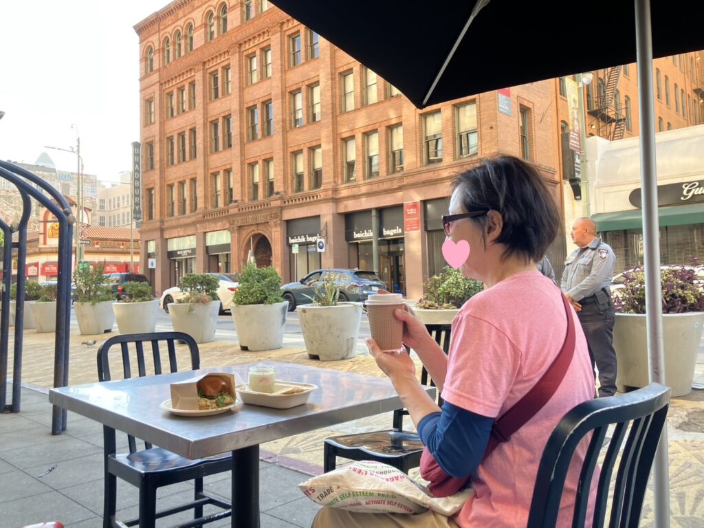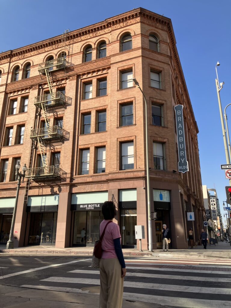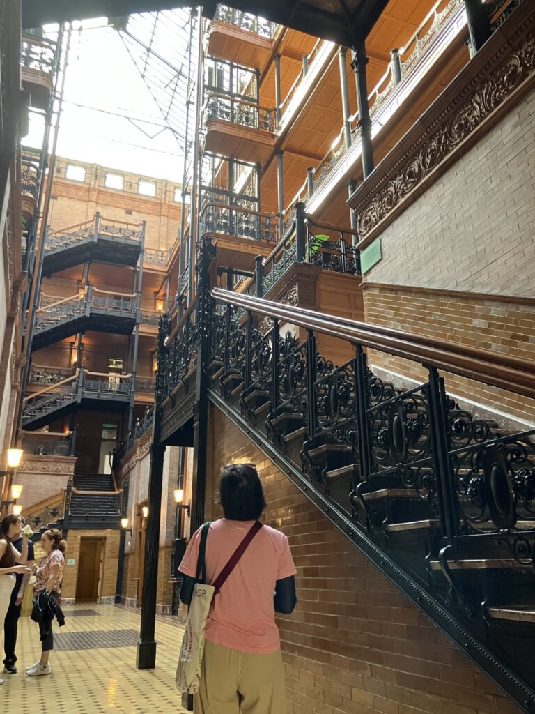 朝食を兼ねてブラッドベリービル横のグランドセントラルマーケットへ、ホテルから約1km10分徒歩で行きましたが、朝にもかかわらず少し緊張しました(すぐ南側がスキッドロウと呼ばれる一番危険なスラム街)。多くのYouTuberがおすすめするエッグスラットでコーヒーとサンドその後ブラッドベリービルを見学、旅行前にハリソン・フォード主演の映画ブレードランナーを見直しました。1893年築のロサンゼルス最古の商用ビルで歴史的建造物にも指定されています。今も商用ビルとして使用されており1階のみ見学可能です。ホテルに戻り12時チェックアウト、ロサンゼルス国際空港へ向かいます。